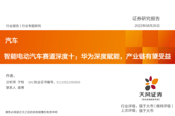 【天风证券】【20220826】汽车行业专题研究:智能电动汽车赛道深度十,华为深度赋能,产业链有望受益-52页