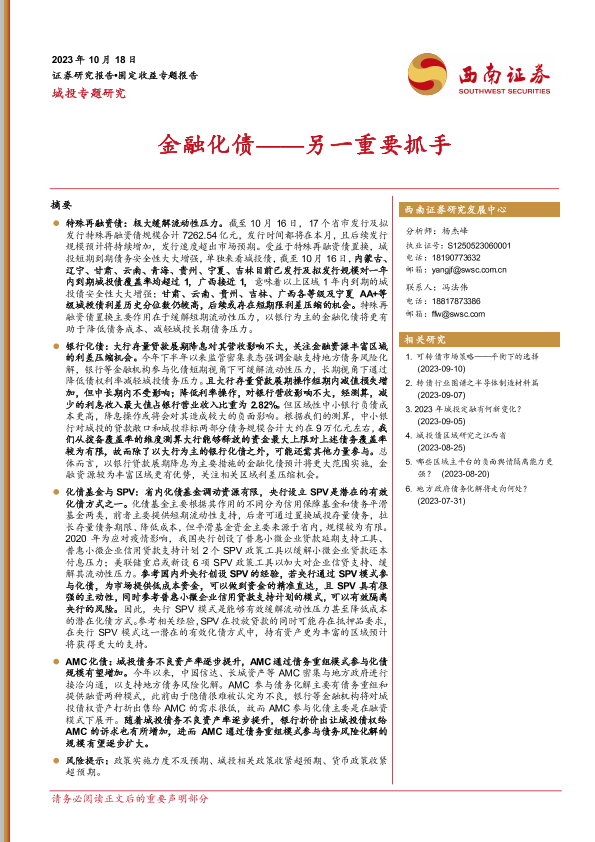 【西南证券】【20231018】城投专题研究:金融化债——另一重要抓手-22页