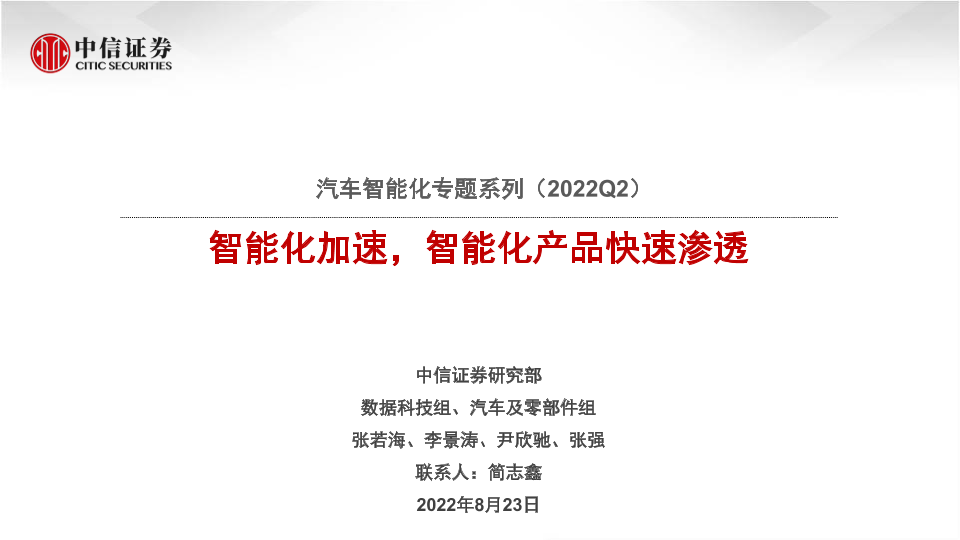 【中信证券】【20220823】汽车行业智能化专题系列(2022Q2):智能化加速,智能化产品快速渗透-36页