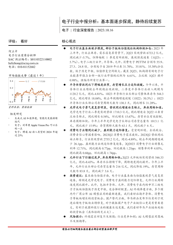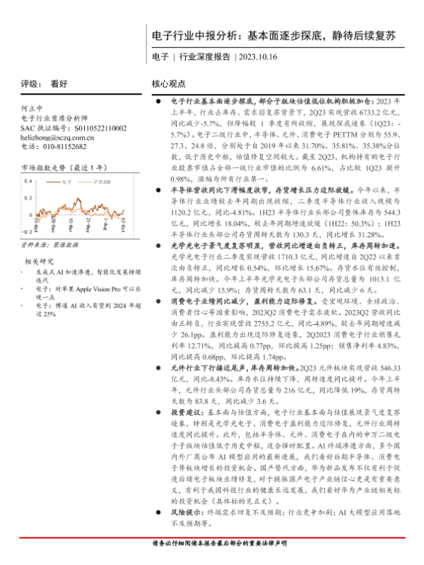 【首创证券】【20231016】电子行业中报分析:基本面逐步探底,静待后续复苏-25页