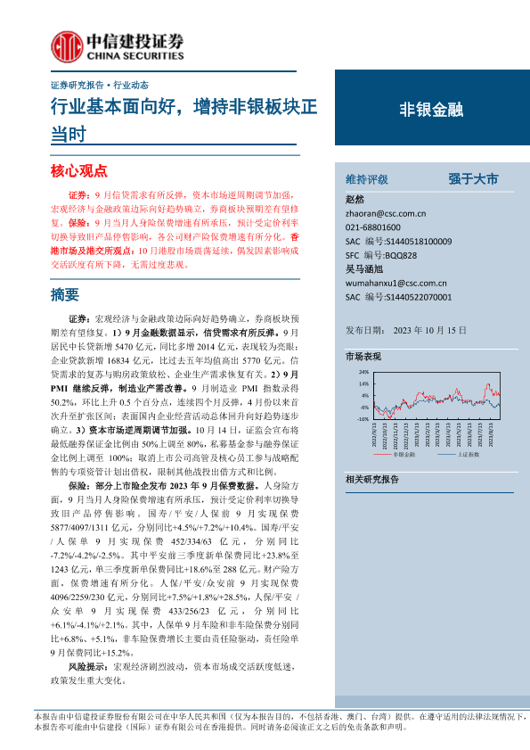 【中信建投证券】【20231015】非银金融行业动态:行业基本面向好,增持非银板块正当时-25页