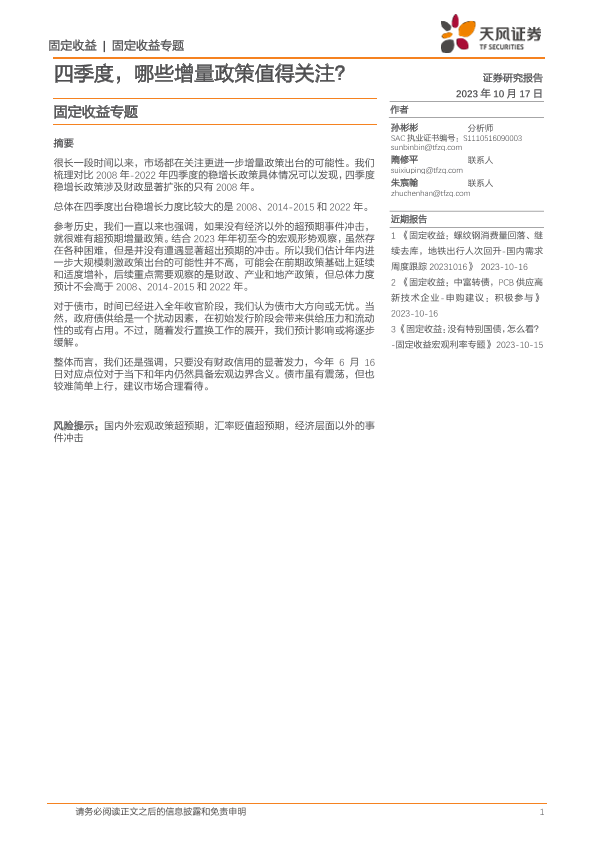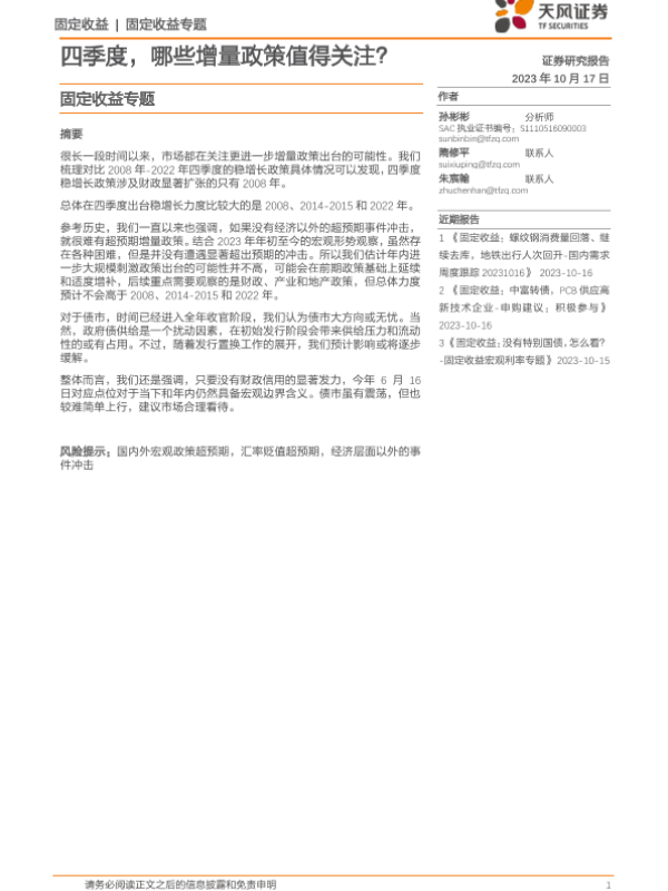【天风证券】【20231017】固定收益专题:四季度,哪些增量政策值得关注?-30页