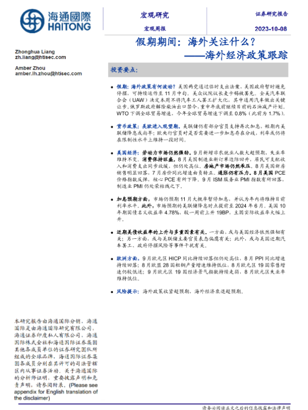 【海通国际】【20231008】海外经济政策跟踪:假期期间,海外关注什么?-17页