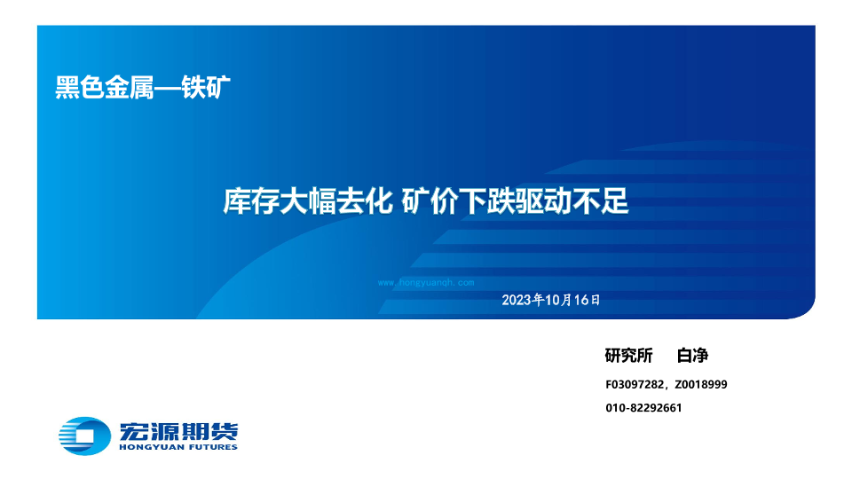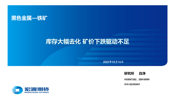 【宏源期货】【20231016】黑色金属_铁矿:库存大幅去化,矿价下跌驱动不足-29页