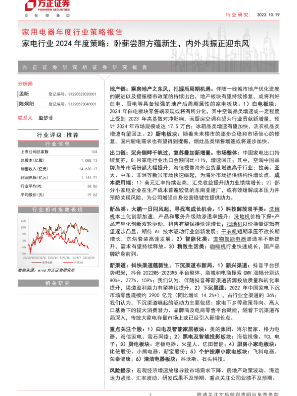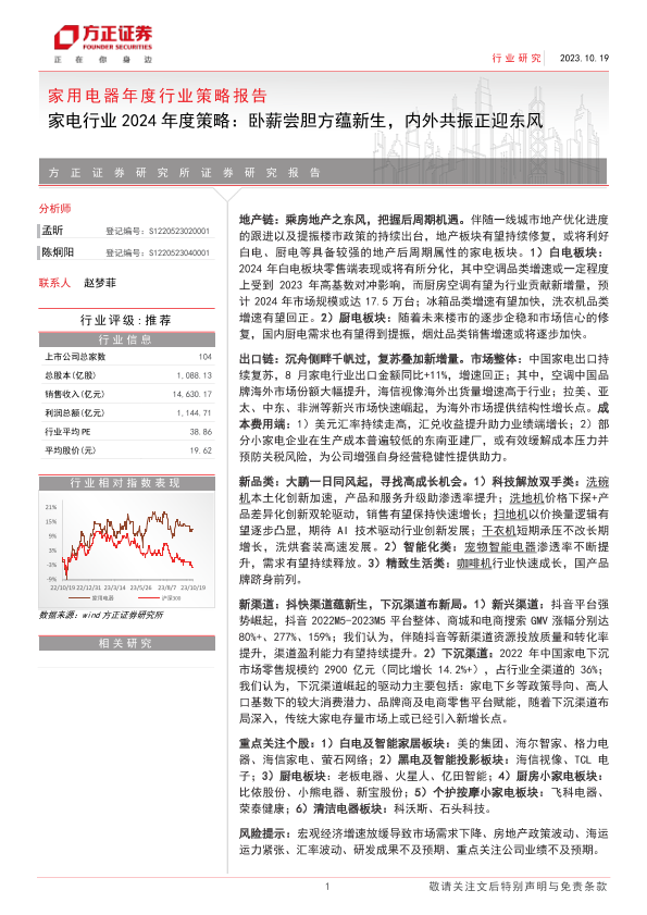 【方正证券】【20231019】家电行业2024年度策略:卧薪尝胆方蕴新生,内外共振正迎东风-41页