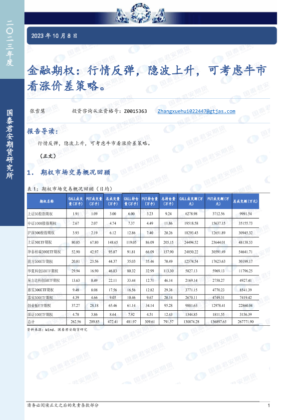 【国泰君安期货】【20231008】金融期权:行情反弹,隐波上升,可考虑牛市看涨价差策略-16页