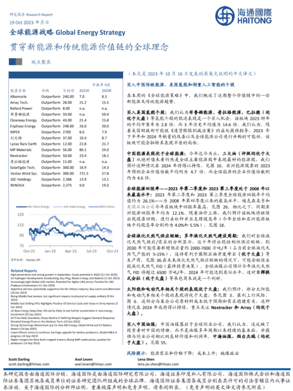 【海通国际】【20231019】全球能源战略行业:贯穿新能源和传统能源价值链的全球理念-37页