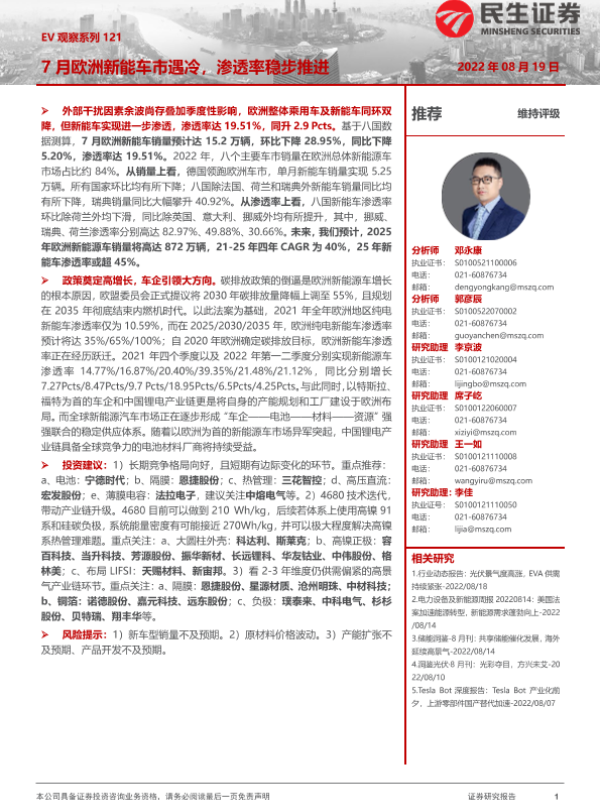 【民生证券】【20220819】7月欧洲新能车市遇冷,渗透率稳步推进-21页