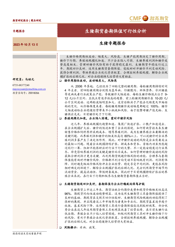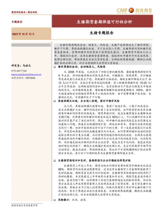 【招商期货】【20231013】生猪专题报告:生猪期货套期保值可行性分析-20页
