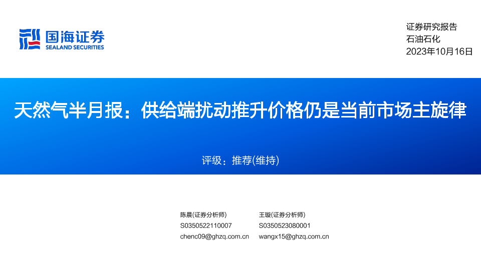 【国海证券】【20231016】石油石化行业天然气半月报:供给端扰动推升价格仍是当前市场主旋律-30页