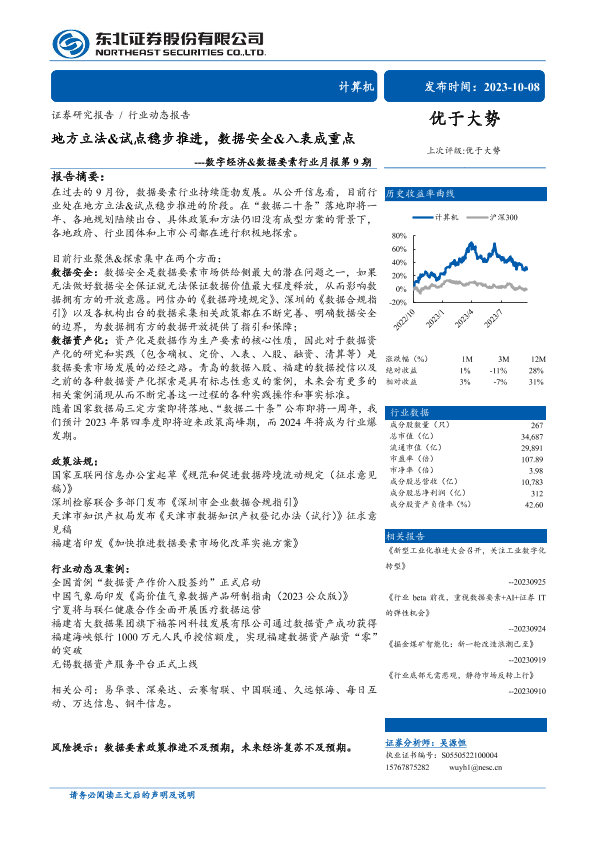 【东北证券】【20231008】数字经济&数据要素行业月报第9期:地方立法&试点稳步推进,数据安全&入表成重点-17页