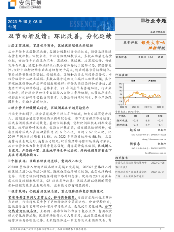 【安信证券】【20231008】双节白酒行业反馈:环比改善,分化延续-16页