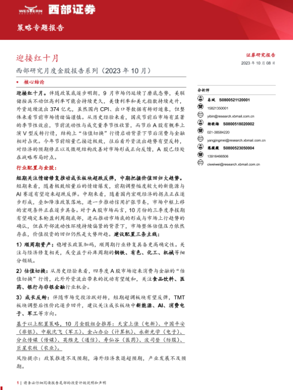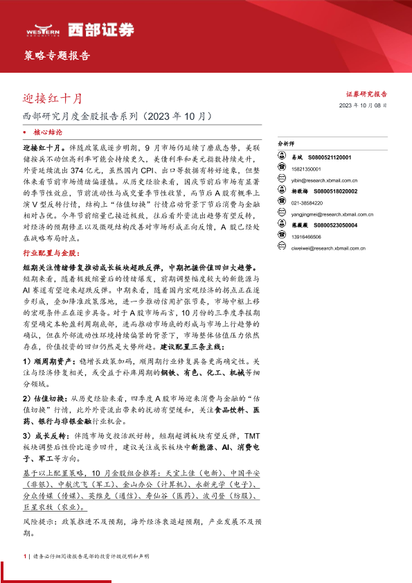 【西部证券】【20231008】西部研究月度金股报告系列(2023年10月):迎接红十月-15页