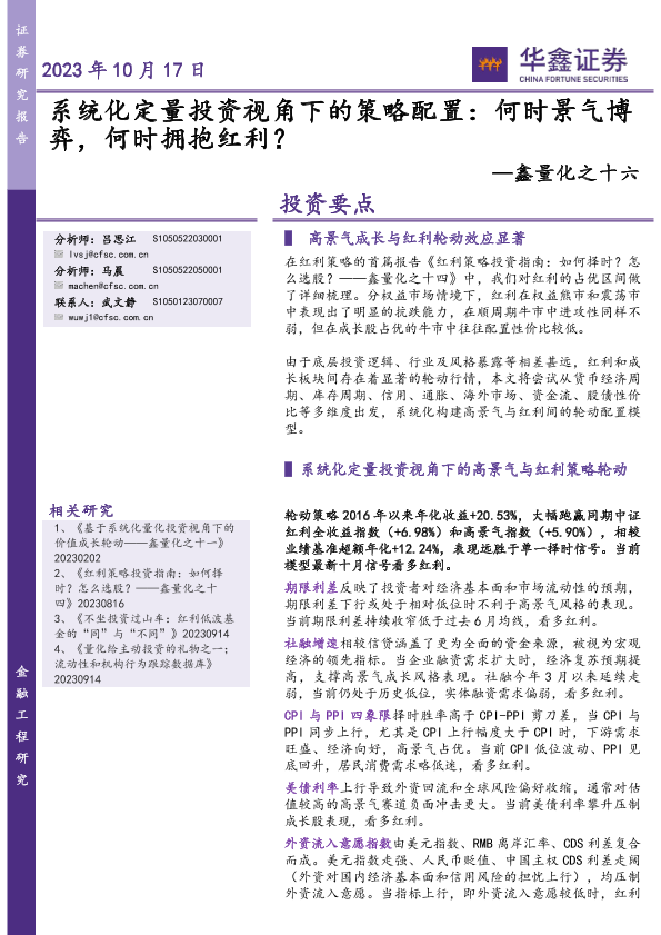 【华鑫证券】【20231017】系统化定量投资视角下的策略配置:何时景气博弈,何时拥抱红利?-21页
