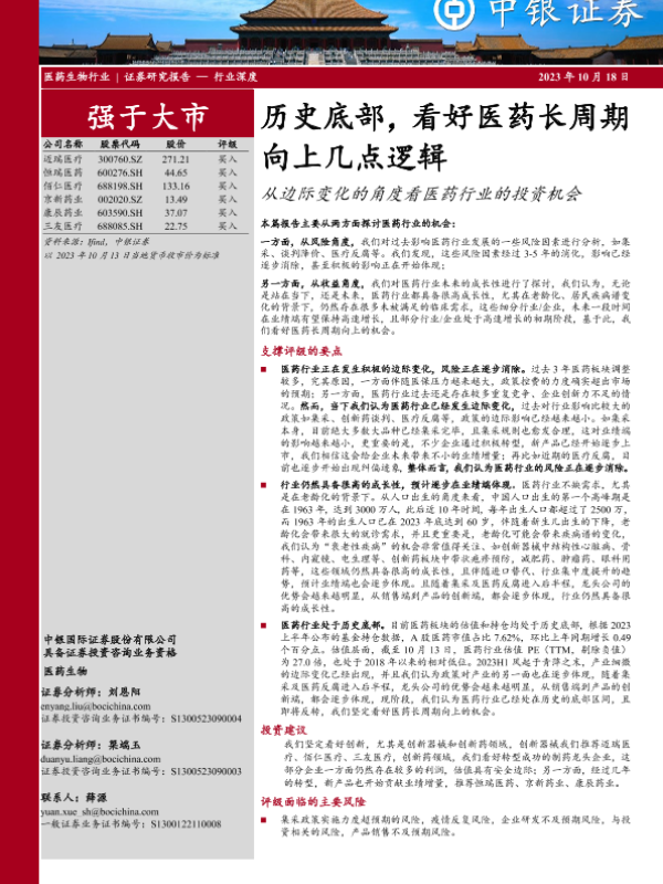 【中银证券】【20231018】医药生物行业:历史底部,看好医药长周期向上几点逻辑,从边际变化的角度看医药行业的投资机会-59页