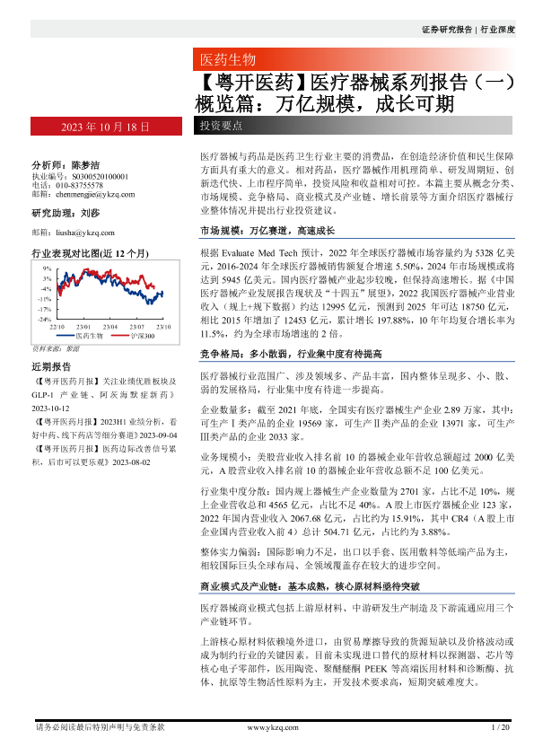 【粤开证券】【20231018】医疗器械行业系列报告(一)概览篇:万亿规模,成长可期-20页