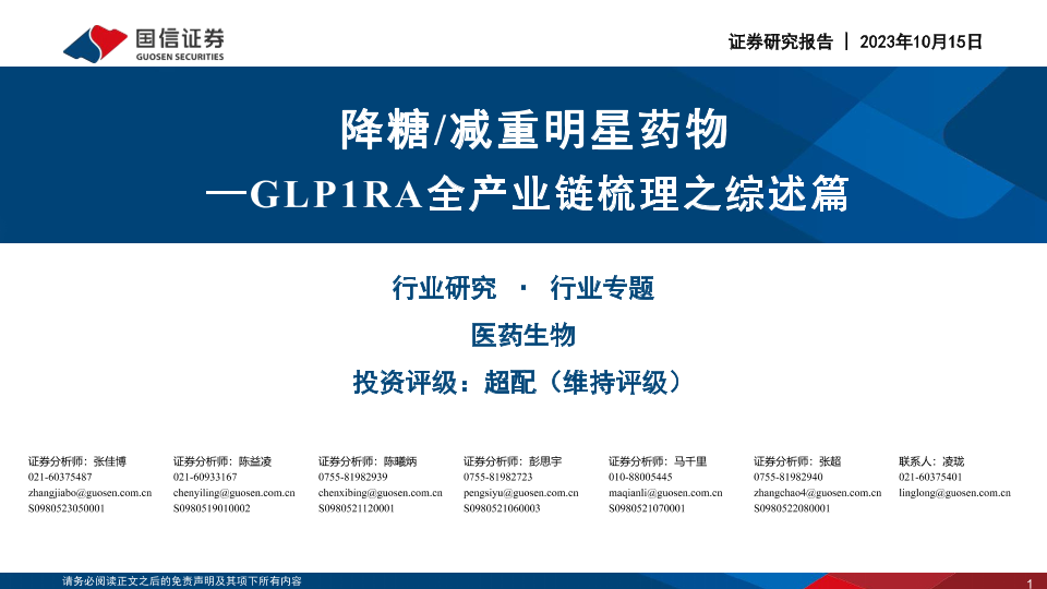 【国信证券】【20231015】医药生物行业专题:GLP1RA全产业链梳理之综述篇,降糖减重明星药物-53页