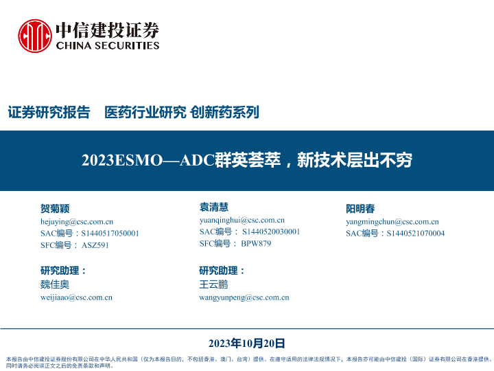 【中信建投证券】【20231020】医药行业研究·创新药系列:2023ESMO_ADC群英荟萃,新技术层出不穷-99页