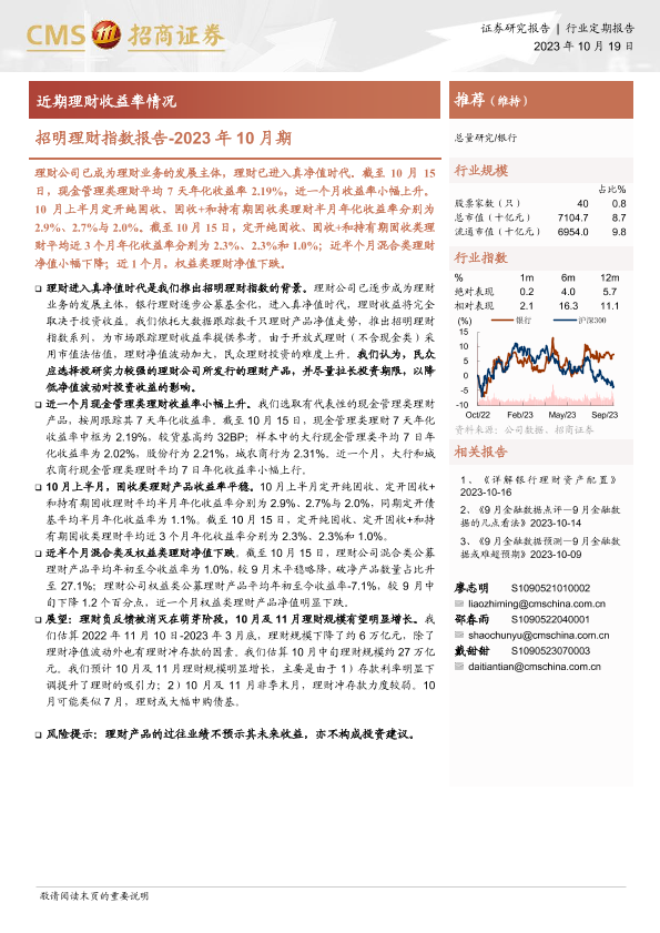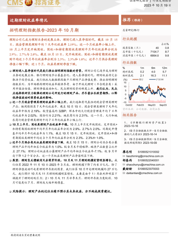 【海通证券】【20231019】银行业招明理财指数报告_2023年10月期:近期理财收益率情况-23页