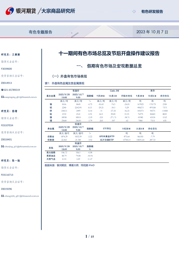 【银河期货】【20231007】十一期间有色市场总览及节后开盘操作建议报告-15页