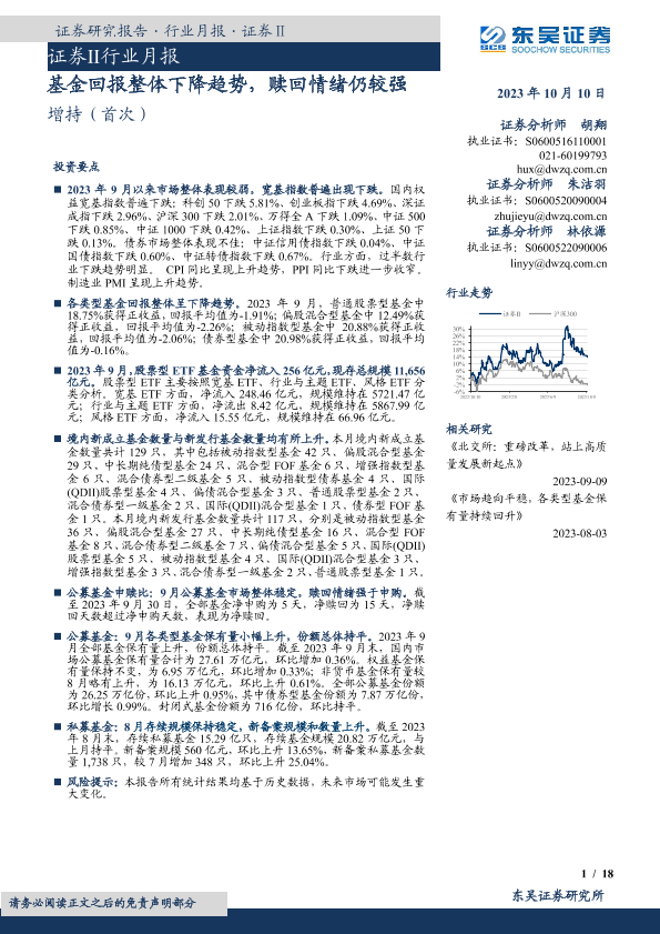 【东吴证券】【20231010】证券Ⅱ行业月报:基金回报整体下降趋势,赎回情绪仍较强-18页