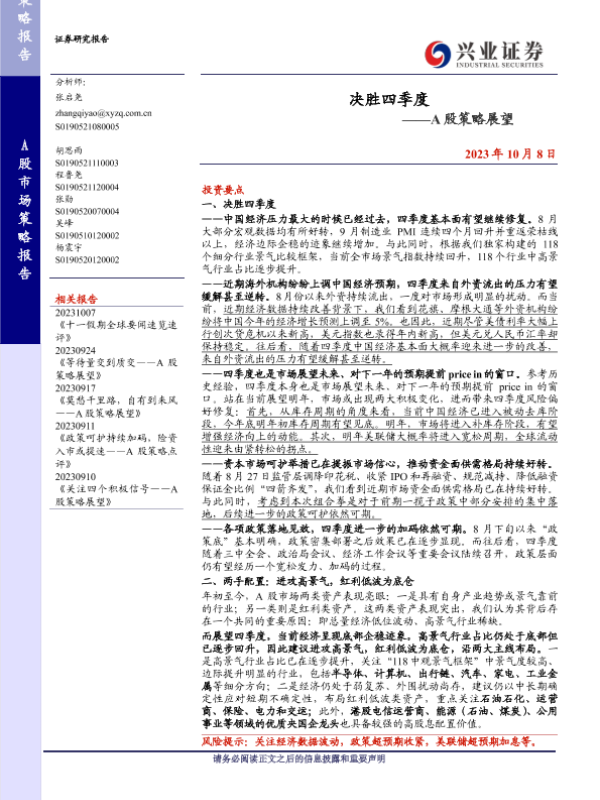 【兴业证券】【20231008】A股策略展望:决胜四季度-18页