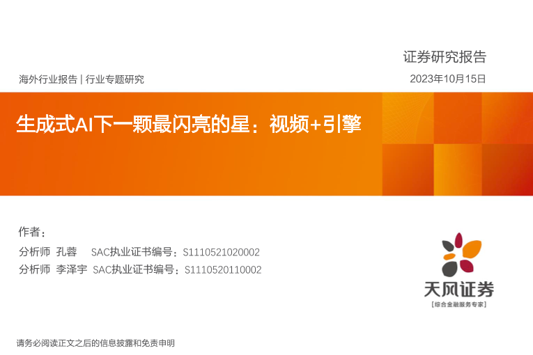 【天风证券】【20231015】综合金融服务行业生成式AI下一颗最闪亮的星:视频+引擎-31页