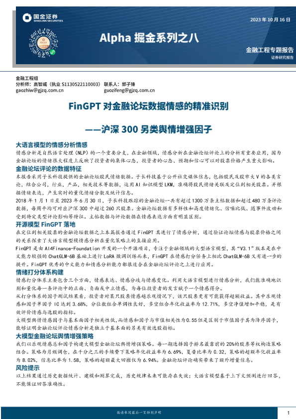 【国金证券】【20231016】Alpha掘金系列之八:沪深300另类舆情增强因子,FinGPT对金融论坛数据情感的精准识别-22页
