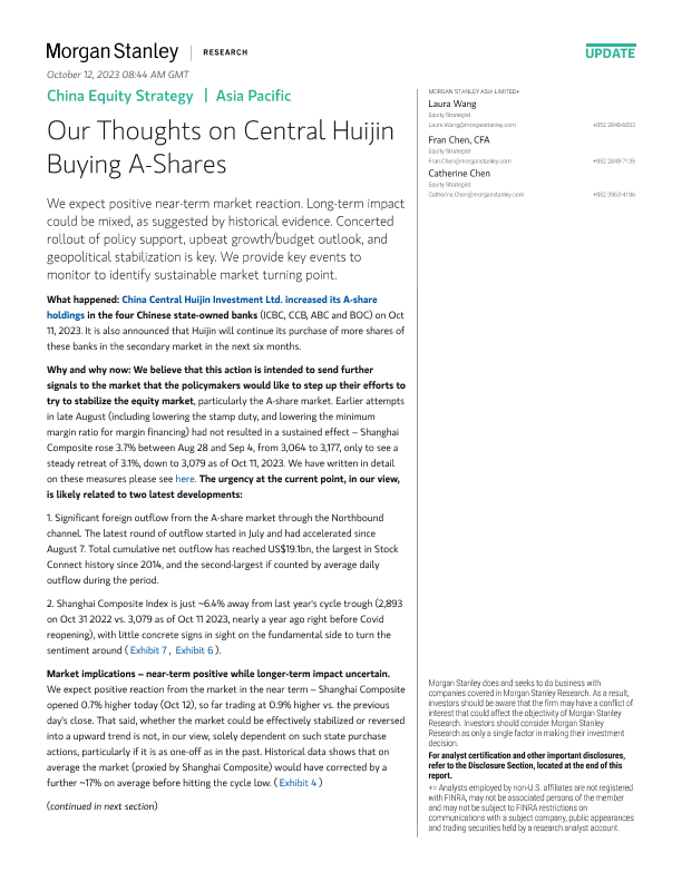 【Morgan Stanley】【202310】Our Thoughts on Central Huijin Buying A-Shares-11页