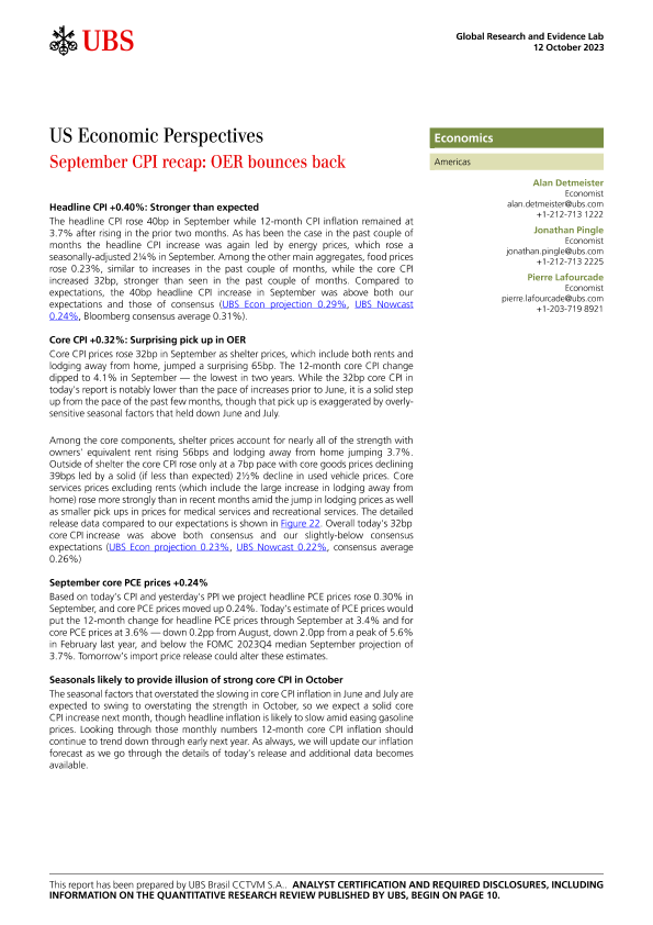 【UBS Brasil CCTVM S.A.】【20231012】US Economic Perspectives _September CPI recap OER bounces back-13页