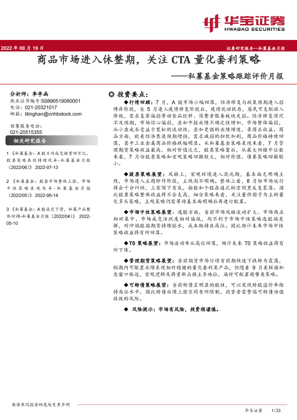 【华宝证券】【20220819】私募基金策略跟踪评价月报:商品市场进入休整期,关注CTA量化套利策略-23页