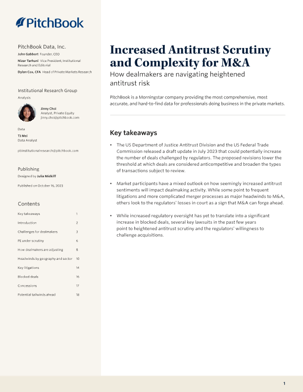 【PitchBook】【20231016】Increased Antitrust Scrutiny and Complexity for M&A-18页