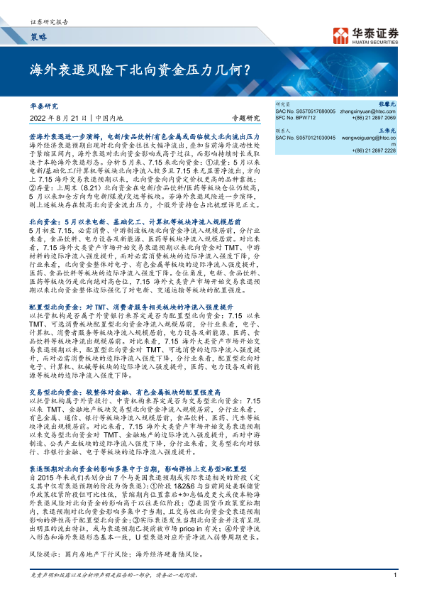 【华泰证券】【20220821】策略专题研究:海外衰退风险下北向资金压力几何?-15页