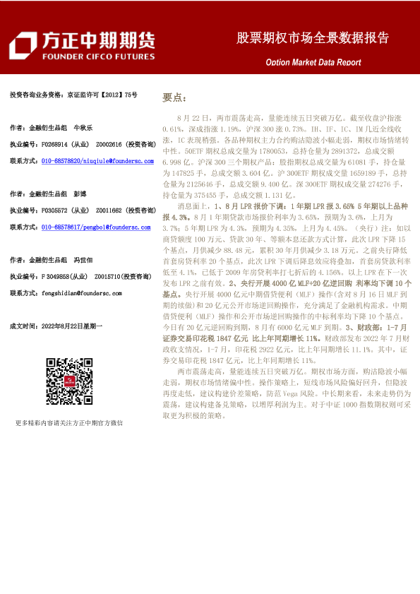 【方正中期期货】【20220822】股票期权市场全景数据报告-22页