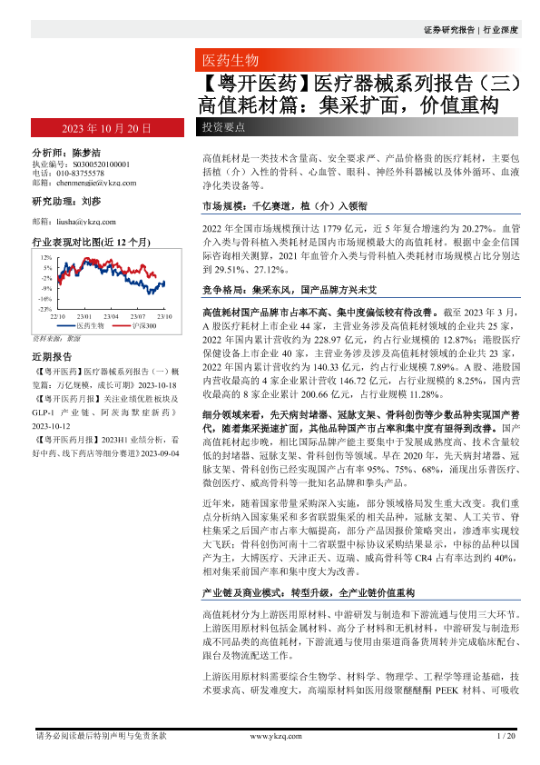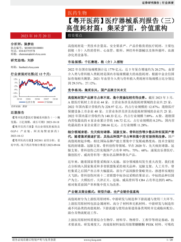 【粤开证券】【20231020】【粤开医药】医疗器械行业系列报告(三):高值耗材篇,集采扩面,价值重构-20页