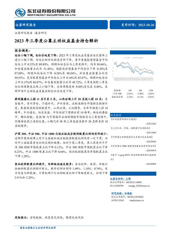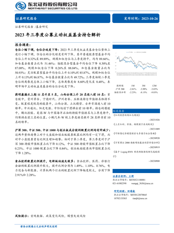 【东北证券】【20231026】2023年三季度公募主动权益基金持仓解析-30页