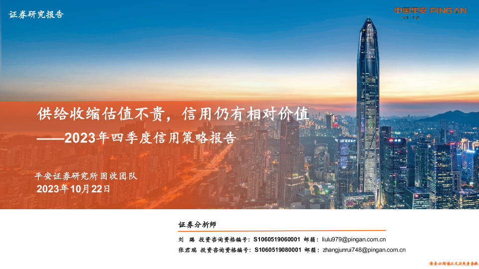 【平安证券】【20231022】2023年四季度信用策略报告:供给收缩估值不贵,信用仍有相对价值-31页