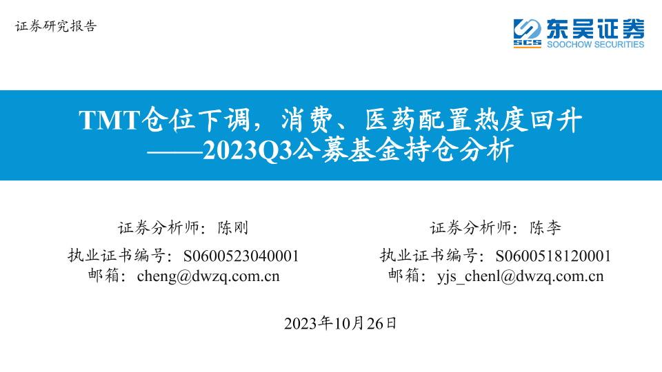 【东吴证券】【20231026】2023Q3公募基金持仓分析:TMT仓位下调,消费、医药配置热度回升-25页
