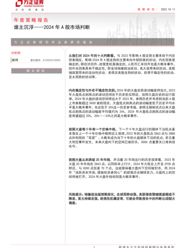 【方正证券】【20231011】2024年A股市场判断:谁主沉浮-17页