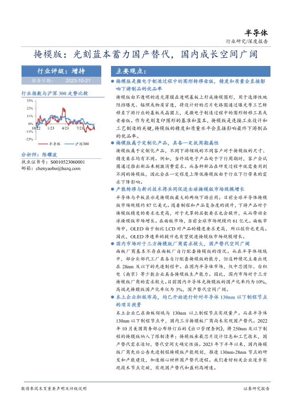 【华安证券】【20231021】半导体行业:掩模版,光刻蓝本蓄力国产替代,国内成长空间广阔-21页