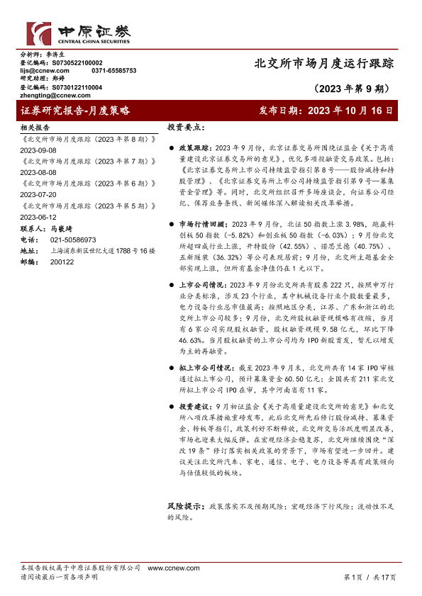 【中原证券】【20231016】北交所市场月度运行跟踪(2023年第9期)-17页