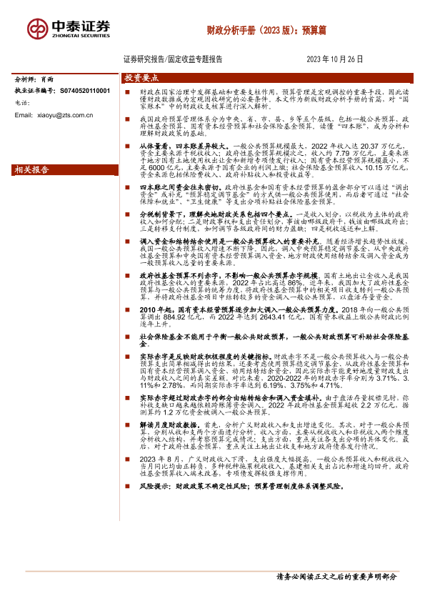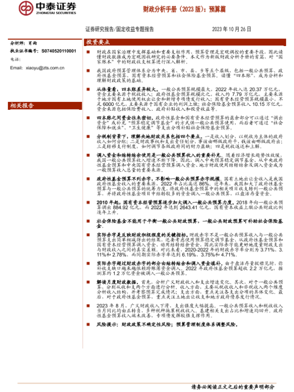 【中泰证券】【20231026】财政分析手册(2023版):预算篇-32页