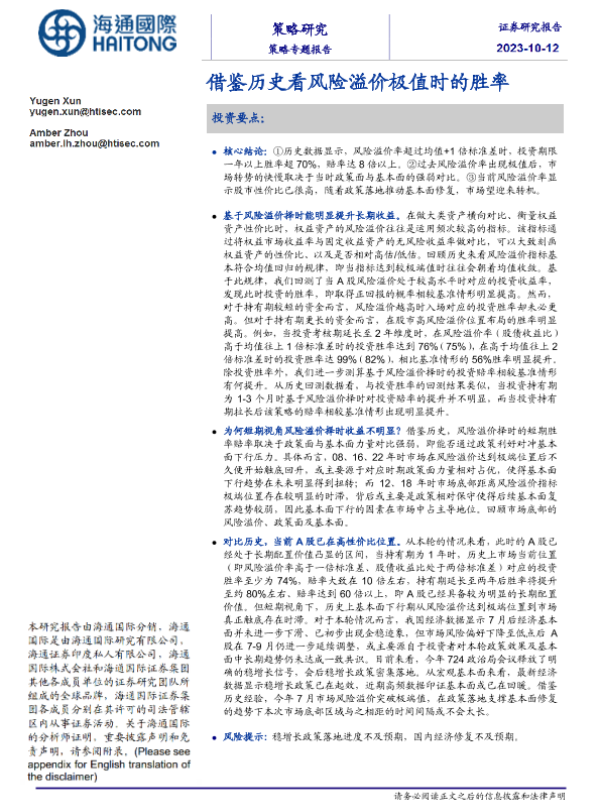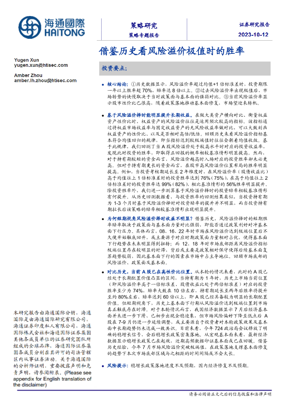 【海通国际】【20231012】策略专题报告:借鉴历史看风险溢价极值时的胜率-16页
