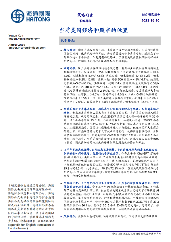 【海通国际】【20231010】当前美国经济和股市的位置-15页