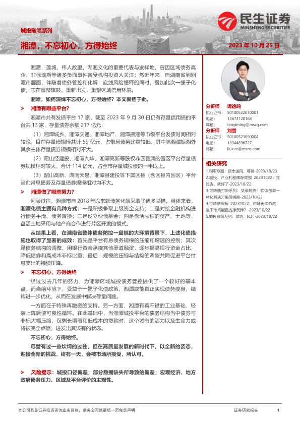 【民生证券】【20231025】城投随笔系列:湘潭,不忘初心,方得始终-20页