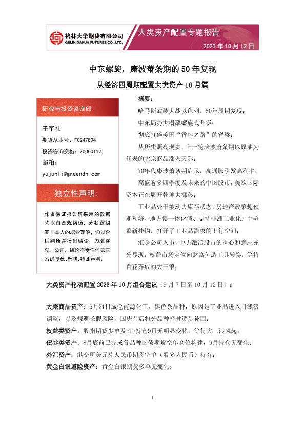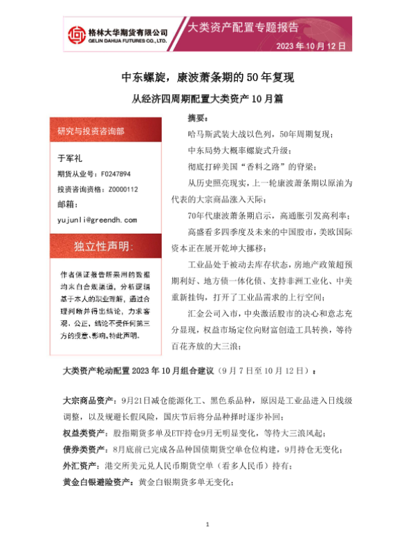 【格林大华期货】【20231012】从经济四周期配置大类资产10月篇:中东螺旋,康波萧条期的50年复现-15页
