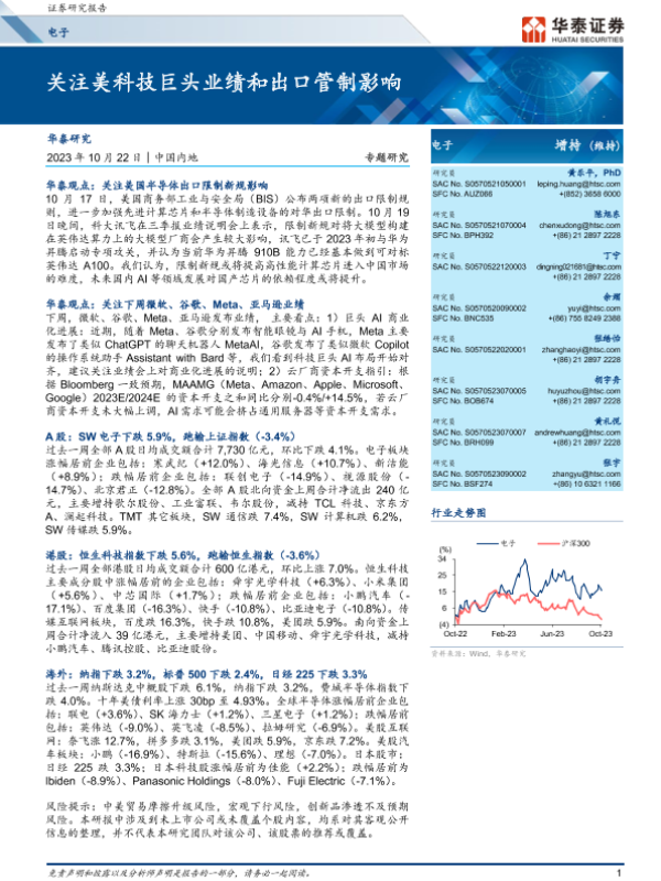 【华泰证券】【20231022】电子行业:关注美科技巨头业绩和出口管制影响-44页