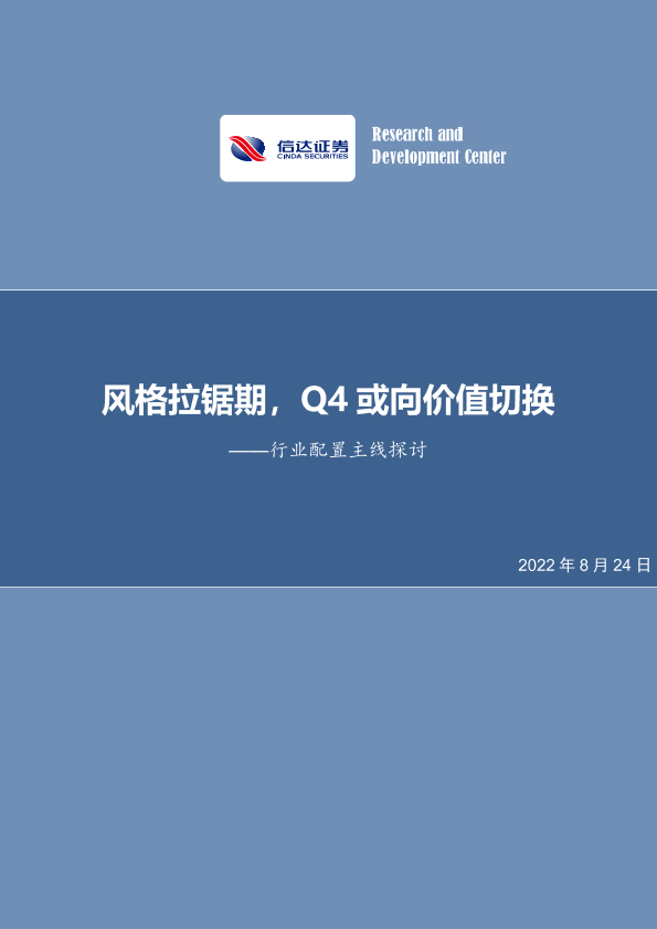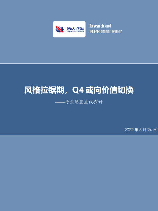 【信达证券】【20220824】风格拉锯期,Q4或向价值切换——行业配置主线探讨-26页
