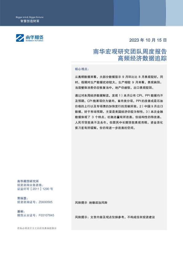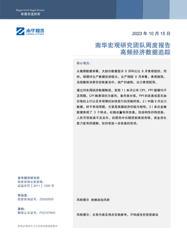 【南华期货】【20231015】高频经济数据追踪-19页