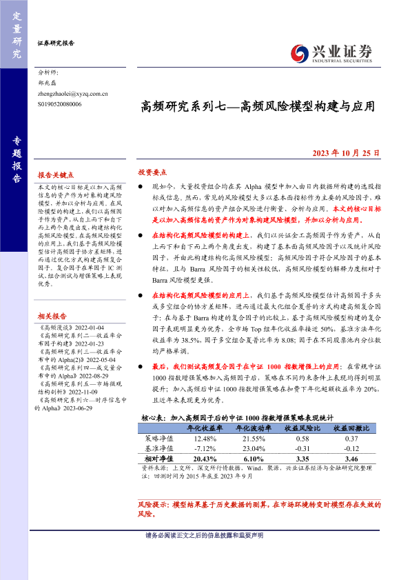 【兴业证券】【20231025】高频研究系列七—高频风险模型构建与应用-23页
